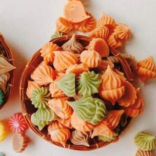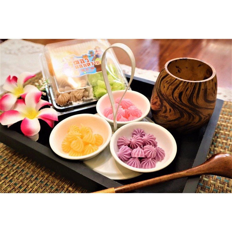 •อาลัวดอกกุหลาบ (4ชิ้น) 60฿ •ถั่วทอดสมุนไพร 35฿ •ขนมปังจีบสังขยา (5ชิ้น) 50฿